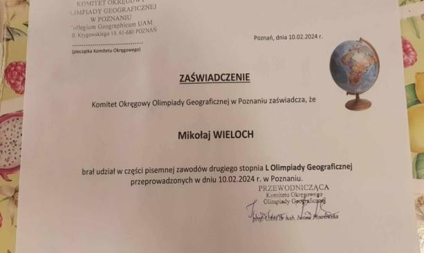 SUKCES NA OLIMPIADZIE GEOGRAFICZNEJ