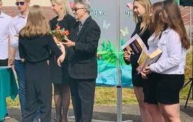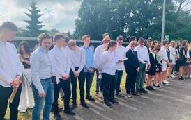 Podziękowano również księdzu Kamilowi Pękalskiemu za 4-letnią pracę w naszej szkole, za zaangażowanie w wychowanie młodzieży, za kształtowanie postaw wrażliwości oraz inspirowanie młodych do własnego rozwoju, za życzliwość i dobre słowo.